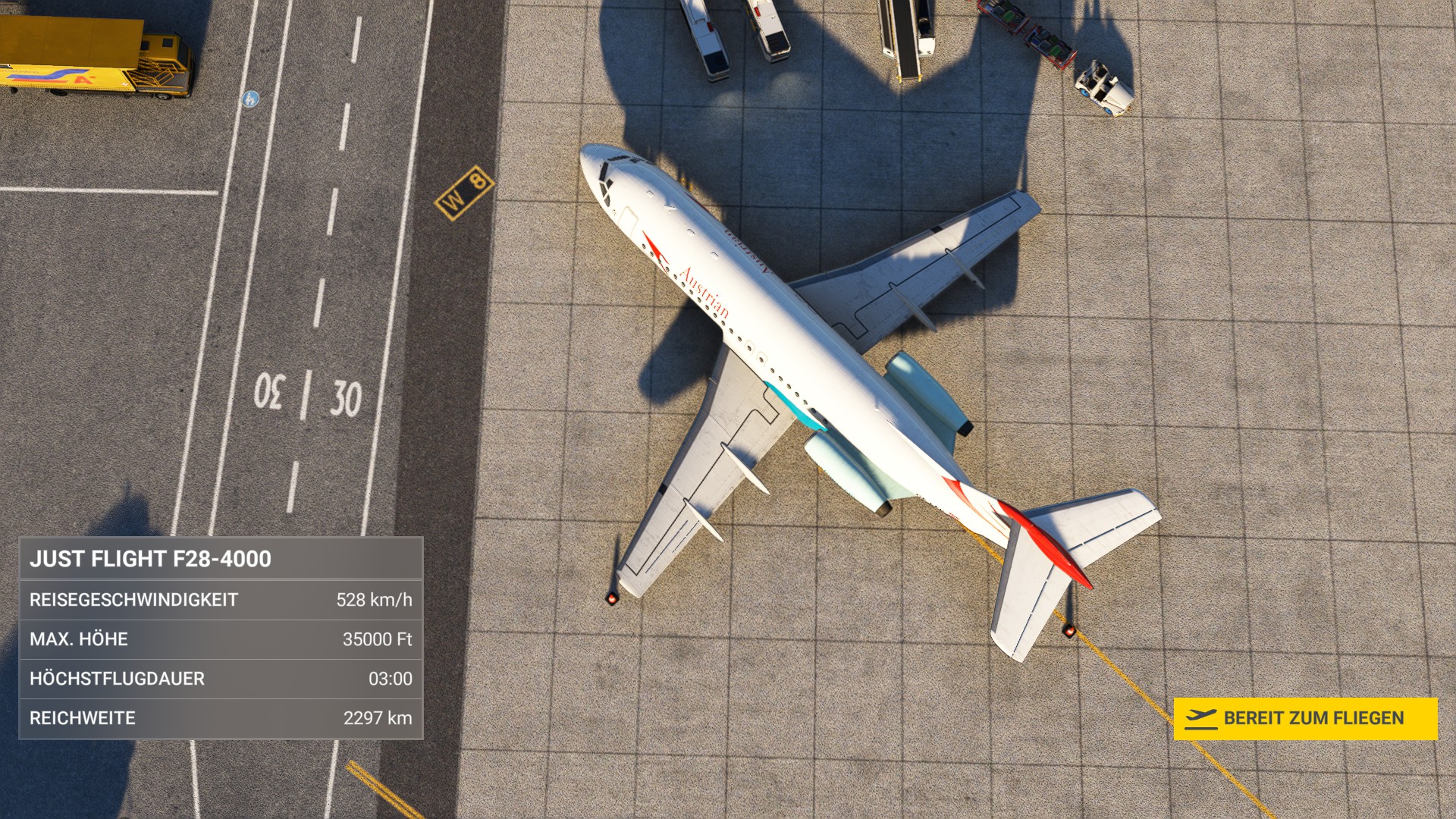 Servus Fliegerfreunde! Heute habe ich mir mal was ganz Besonderes gegönnt. Ich habe meine hochmodernen Airbu-sen (oder heißt es Airbi?) im Hangar gelassen, die Diamond-Fabrik in LOAN kurz gegrüßt und bin in die Fokker F28 Fellowship von Just Flight gestiegen.