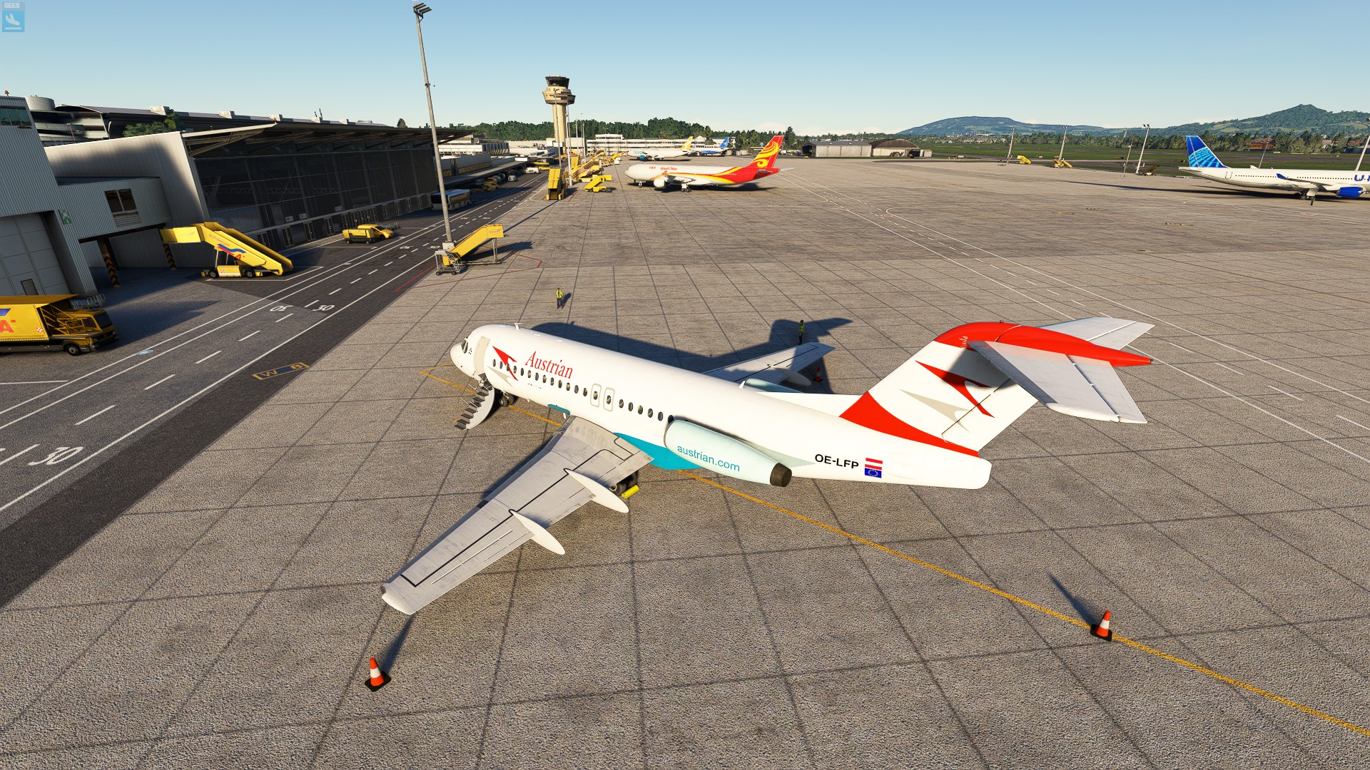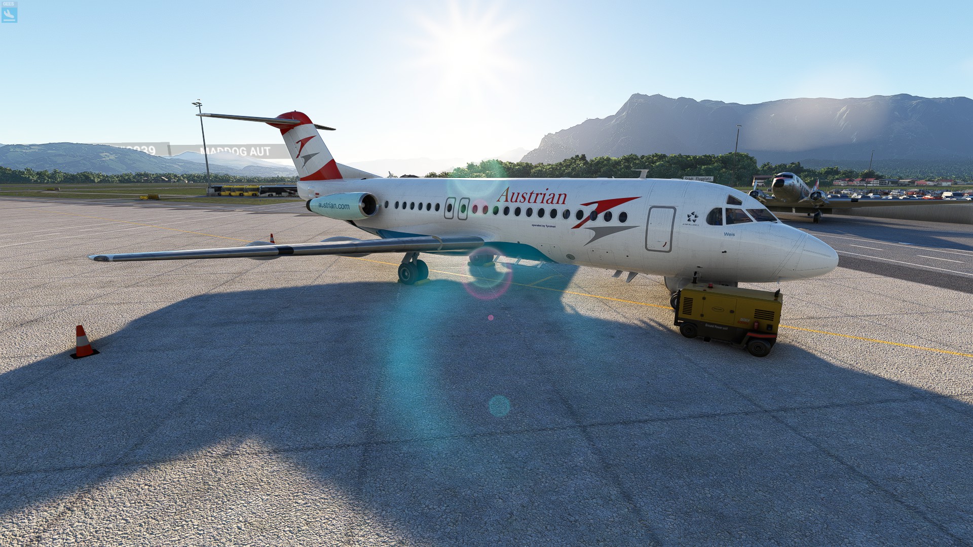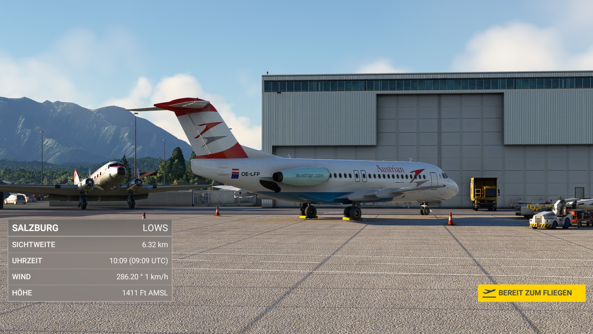 Dank der genialen Szenerie auf Flightsim.to sieht man die Werkshallen so detailliert, dass ich fast versucht war, kurz auszusteigen und zu fragen, ob sie mir meine F28 nicht aus Carbon nachbauen können. Kleiner Tipp: Wer LOAN ohne Add-On fliegt, verpasst die Seele der österreichischen Luftfahrt!